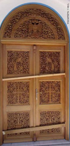 Πόρτα κλασικό σκάλισμα διπλής όψεως 3,20μ.ύψος-1,90μ.μήκος